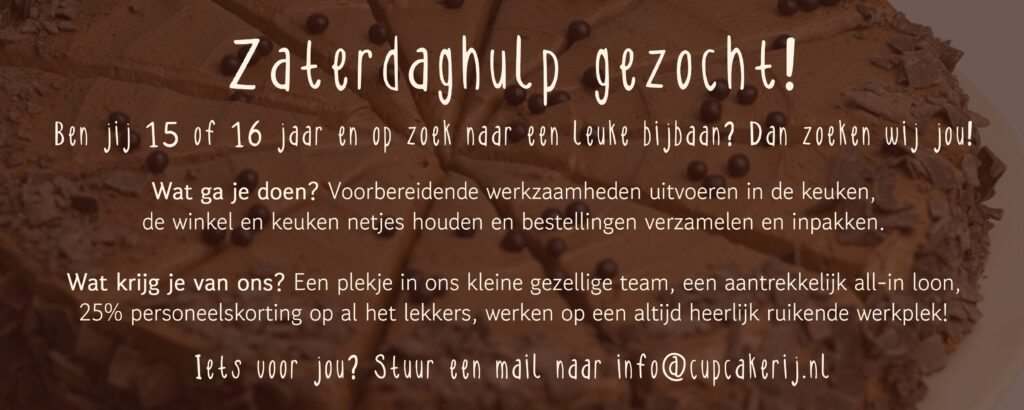 Onze vitrine is tijdens onze openingstijden altijd gevuld met heerlijke cupcakes, plaatgebak en sweets. En ja, dat kun je dus direct meenemen om thuis van te genieten!